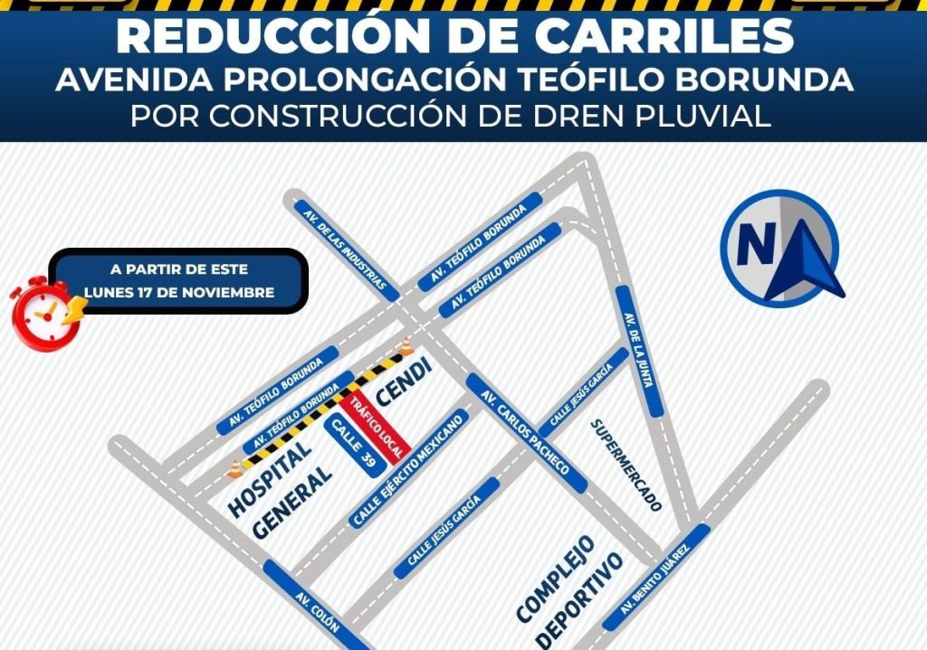 Publicidad Este lunes comenzó la reducción de carriles en la avenida prolongación Teófilo Borunda, a la altura del Hospital General de Chihuahua “Dr. Salvador Zubirán Anchondo”, debido a la construcción de un dren pluvial en la colonia Barrio el Bajo, informó la Dirección de Obras Públicas. La obra forma parte del programa Presupuesto Participativo y […]