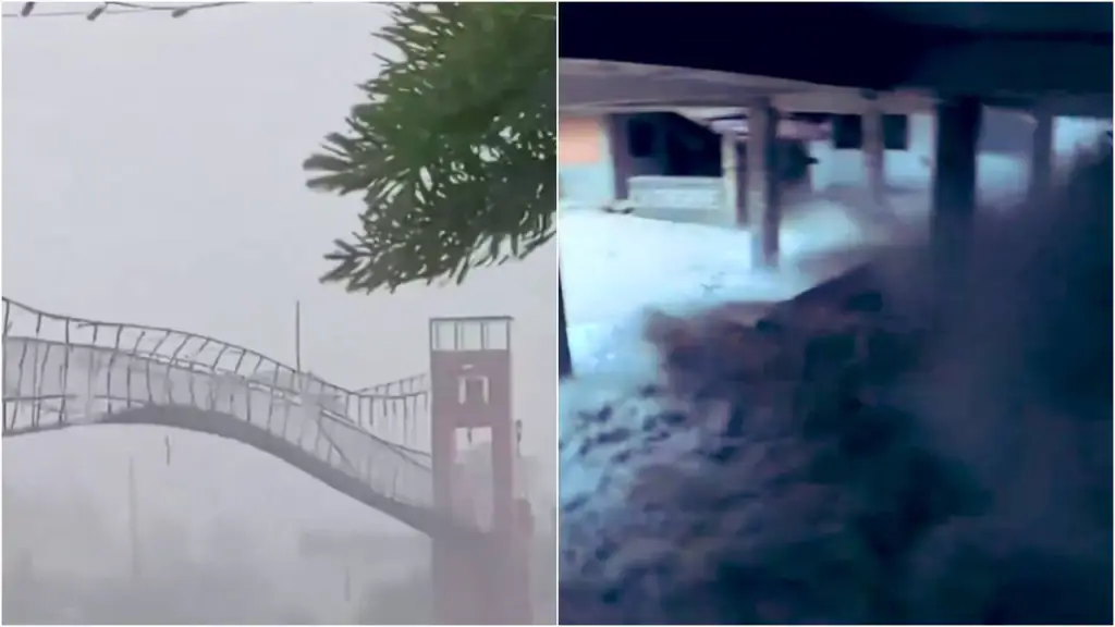 Fuertes vientos del tifón Fung-wong sacuden puente colgante en Filipinas