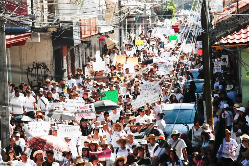 Miles marchan en Uruapan para exigir justicia para Carlos Manzo