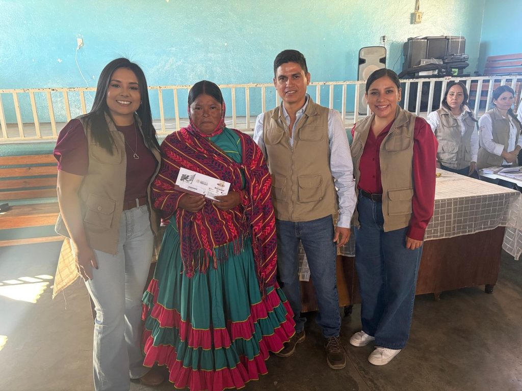 Mayra Chávez entrega tarjetas de “La Escuela es Nuestra” en Yoquivo, Batopilas