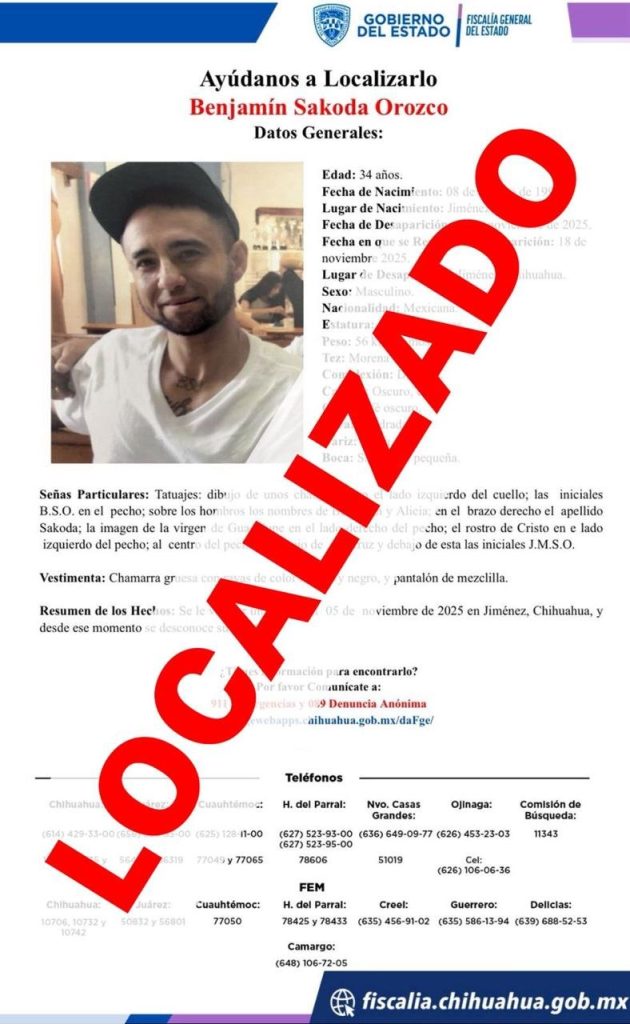 Encuentran a Benjamín, estaba con su pareja en Chihuahua