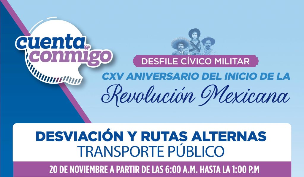 Anuncia Subsecretaría de Transporte modificaciones en rutas por desfile del 20 de noviembre