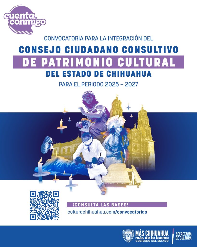 La Secretaría de Cultura, reitera la invitación a la ciudadanía para participar en la convocatoria para la conformación del Consejo Ciudadano Consultivo de Patrimonio Cultural del Estado de Chihuahua (CCCPC), para el periodo 2025-2027, que concluye este próximo 28 de noviembre. El consejo tiene como objetivo reunir a chihuahuenses interesados en la protección, […]