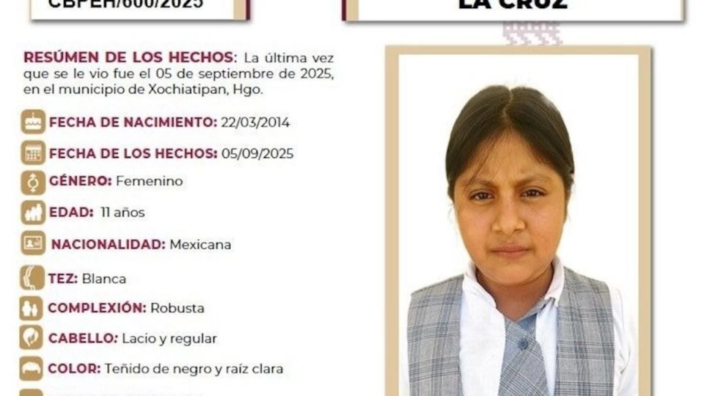 La menor había sido vista por última vez al salir de su escuela primaria en Ixtaczoquico
