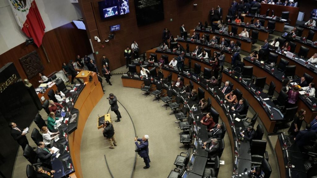 Miembros de la asociación Recap se manifiestan en el Senado contra toma de protesta de juzgadores