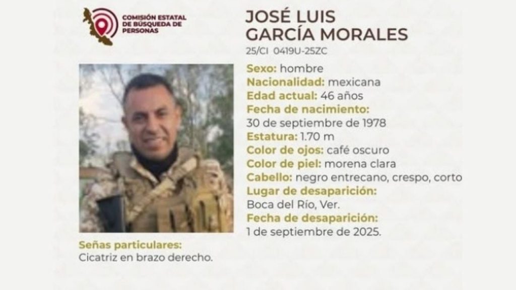 La Comisión Estatal de Búsqueda activó la ficha de desaparición el pasado 1 de septiembre, cuando García Morales salió de su oficina en Boca del Río.