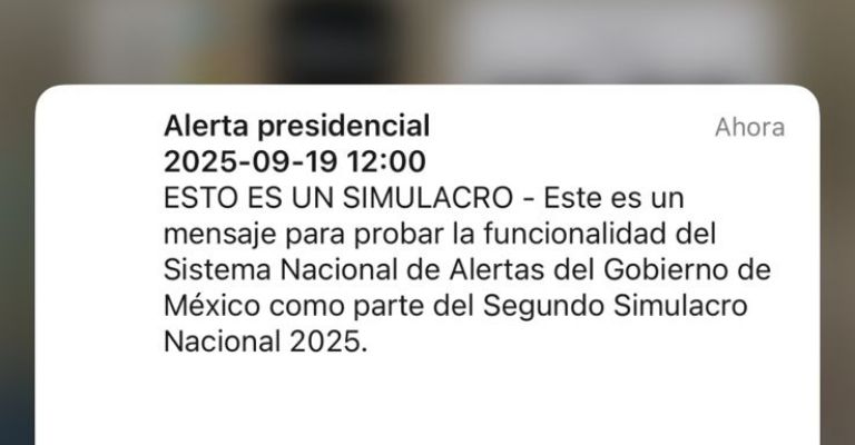 Las personas recibieron un mensaje que indica que se trata de un simulacro para probar la funcionalidad del Sistema Nacional de Alertas del Gobierno de México, como parte del Segundo Simulacro Nacional 2025, aunque algunos de estos mensajes iniciaron con la leyenda: “Alerta presidencial”.